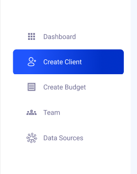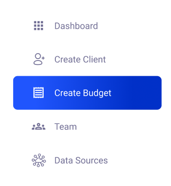 Select "Create Budget" from the left navigation and then select the client you just created in the previous step. Budgets need to be assigned to a client so you need to create the client first.&#x20;